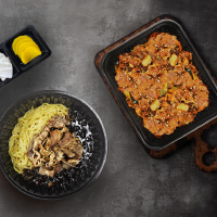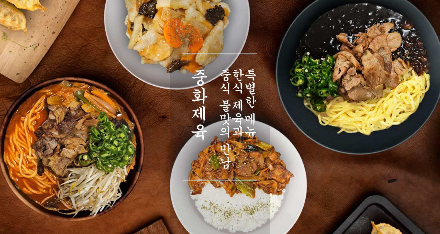 푸짐한 고기짜장(또는 중화제육면)과 함께 즐기는 중화제육의 특별하고 새로운 맛의 정석